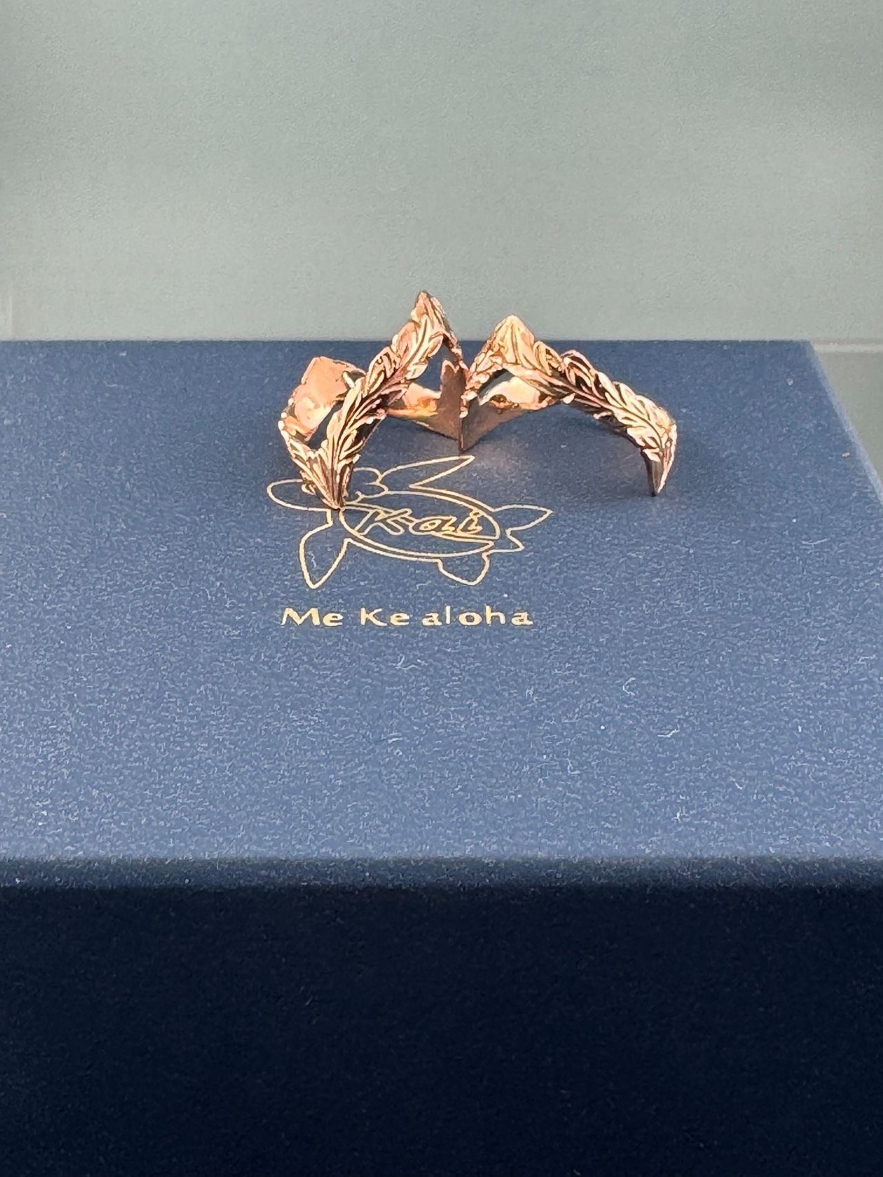 ハワイ工房でI 4金ピンクゴールド作製のスクロールリングです。
